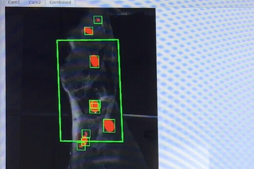 BluMax 视觉系统通过 Helios2+ 相机检测肉类表面的粪便污染。Helios2+ 提供高精度 3D 扫描,并与 BluMax 系统严格同步,确保荧光信息与深度数据精准对齐,从而实现高可靠性的自动化检测。