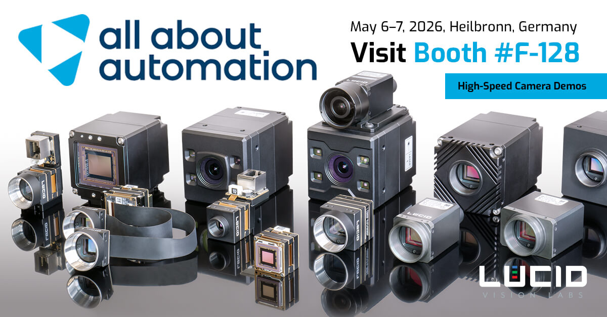 加拿大不列颠哥伦比亚省本那比 – 2026年4月16日 – 工业相机领先设计与制造商 LUCID Vision Labs, Inc. 将在 2026年5月6日至7日于德国海尔布隆举行的 All About Automation 2026 上展示其最新机器视觉技术。All About Automation 是工业自动化、机器人及数字化领域的重要展会。本次将展示具备坚固 IP67 防护等级的 HDR 相机及事件驱动(Event-based)机器视觉相机,特别适用于复杂光照条件下的工业应用。