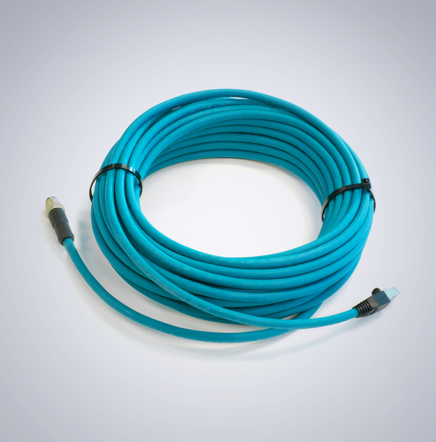 M12 转 RJ45 IP67 Cat6a 电缆(Amphenol)– 15米,深绿色