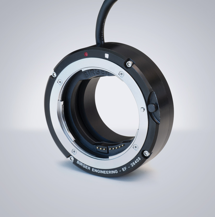 EF-Mount 镜头转 TFL-Mount Birger 转接环(ADA-TFL-EF-US/ADA-TFL-EF-EU)配备 M8 GPIO 相机连接和电源,可在 Atlas10/Atlas TFL 接口型号上使用任意 Canon EF 镜头。M8 连接使用户能够通过串口命令对镜头进行电子对焦。提供北美或欧盟版本电源。